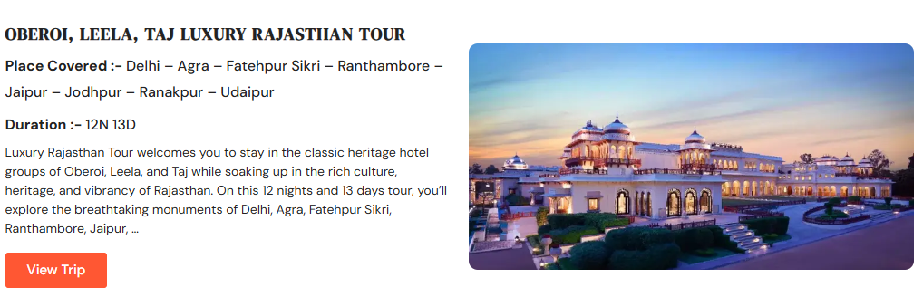 Every city in Rajasthan, from Jaipur to Udaipur, has a story to tell. Luxury Rajasthan tour packages are ideal for travelers seeking to experience this beautiful state in style and comfort.